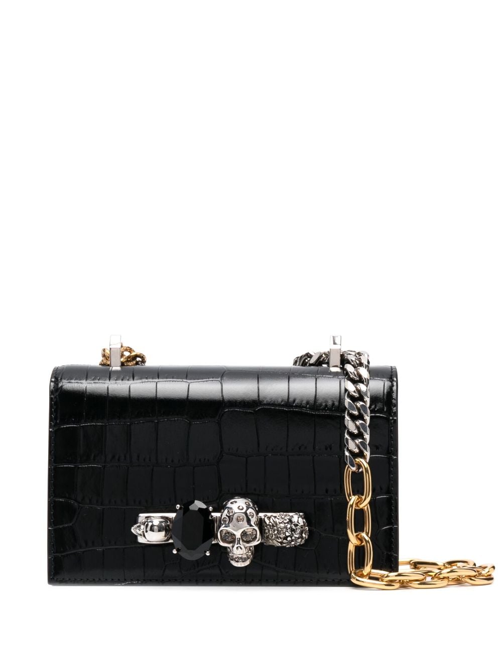 Alexander McQueen jewelled crocodile-embossed shoulder bag