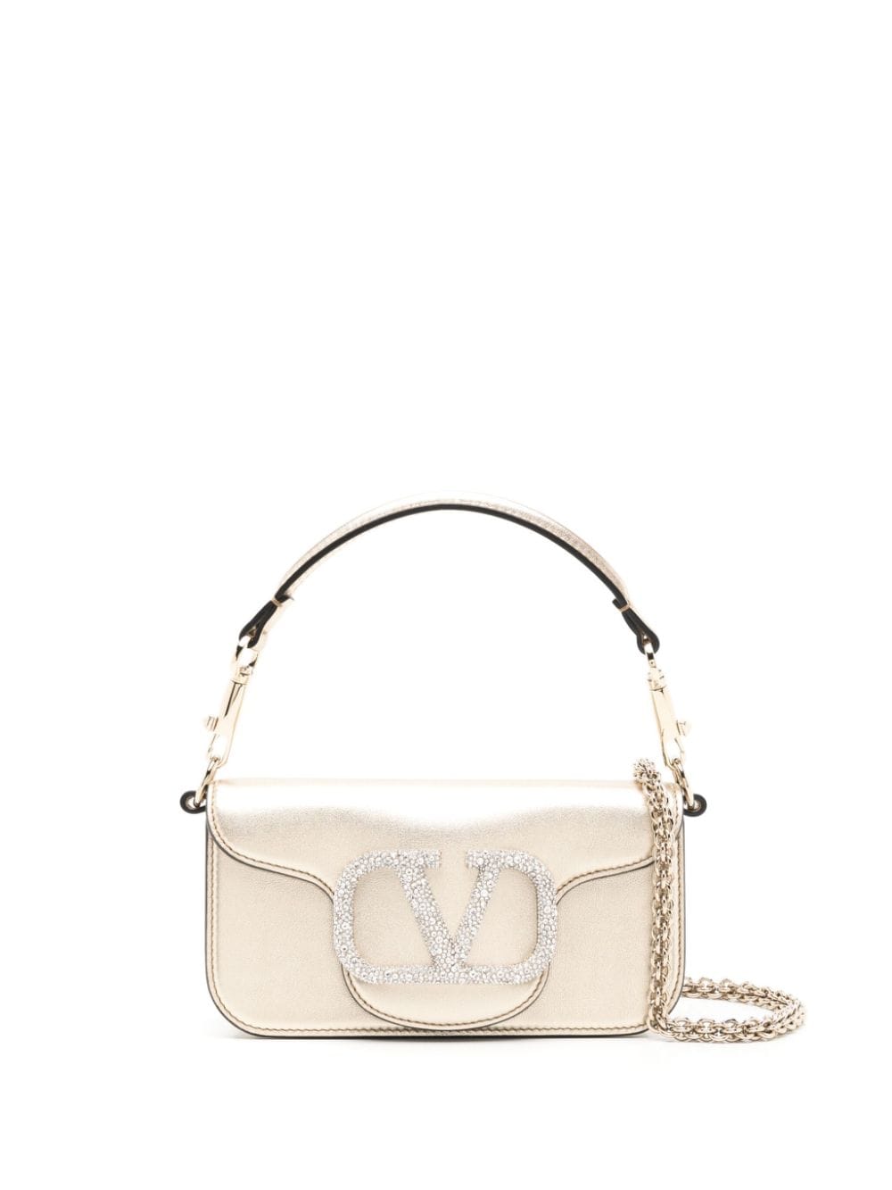 Valentino Garavani small Locò crystal-embellished metallic shoulder bag